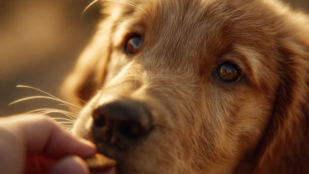 - Recompensas de Médio Valor: Ração favorita, petiscos comerciais semi-úmidos.